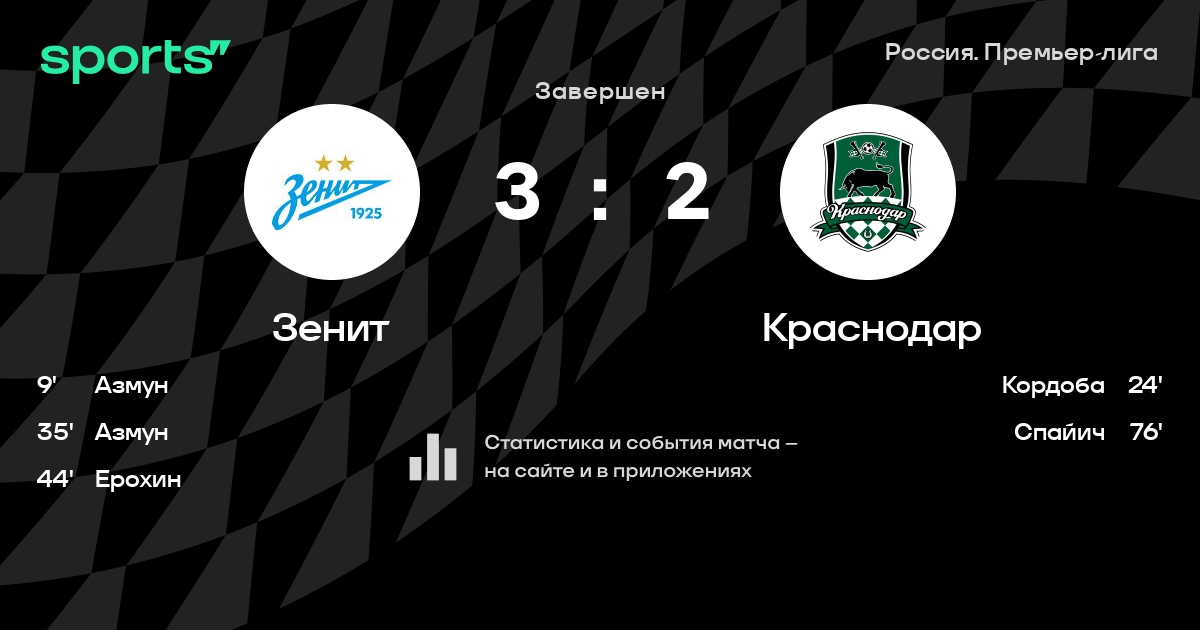 Зенит – Краснодар: Зенит забивает в 10 последних матчах против этого соперника