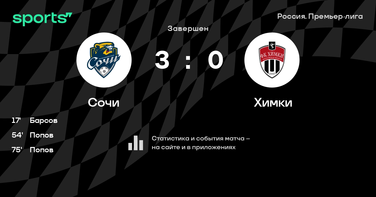 Сочи – Химки: Сочи не проигрывает в 7 последних матчах против этого соперника