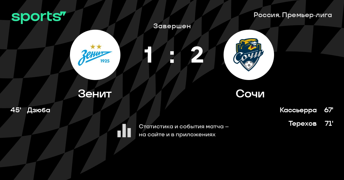 Зенит – Сочи: Сочи забивает в 4 последних матчах против этого соперника