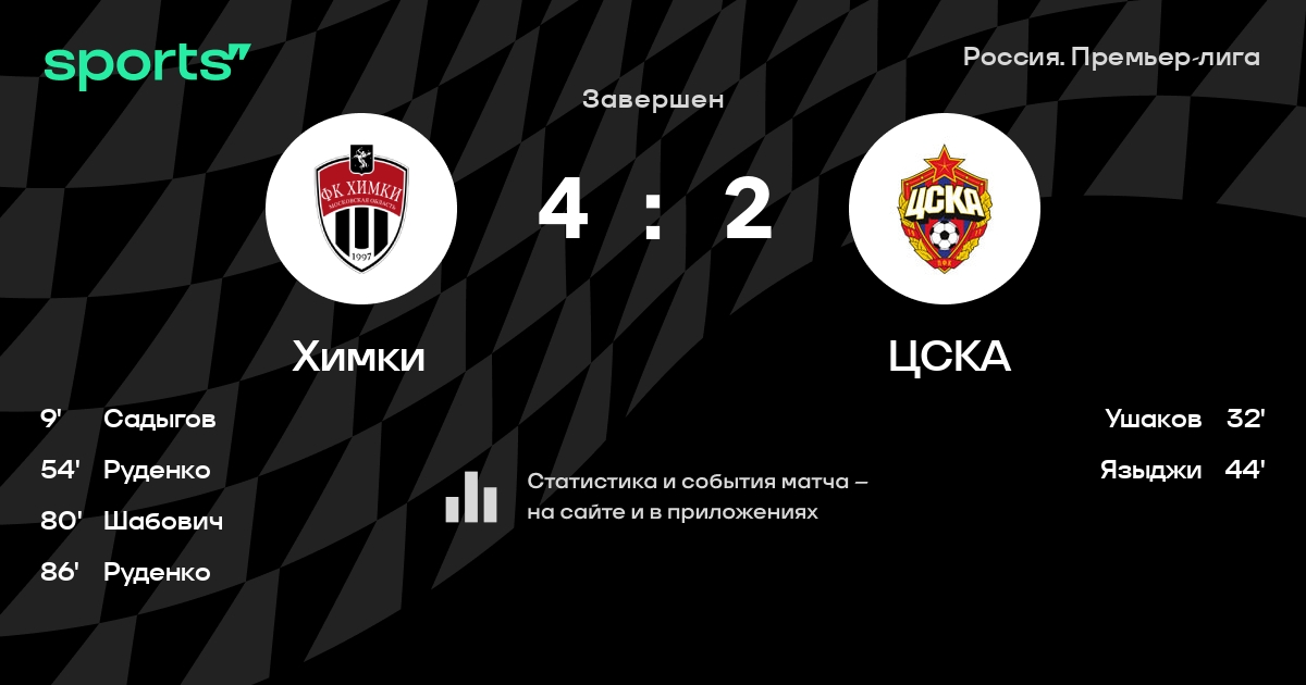 Химки – ЦСКА: ЦСКА забивает в 9 из 11 последних матчей против этого соперника