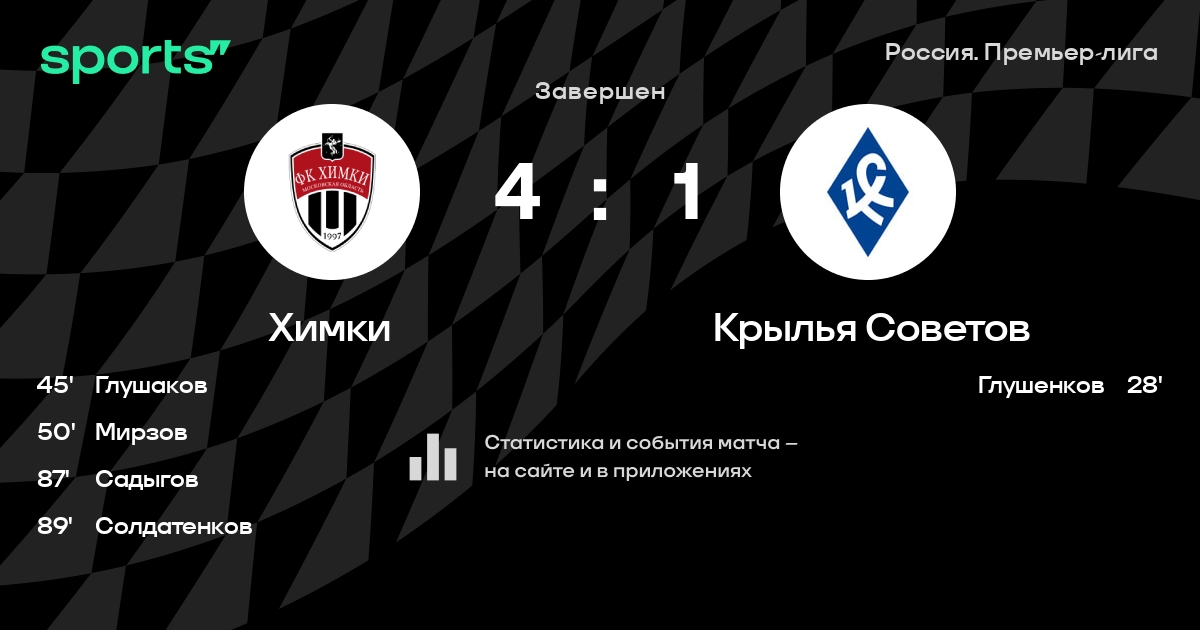 Химки – Крылья Советов: Крылья Советов забивает в 9 последних матчах против этого соперника