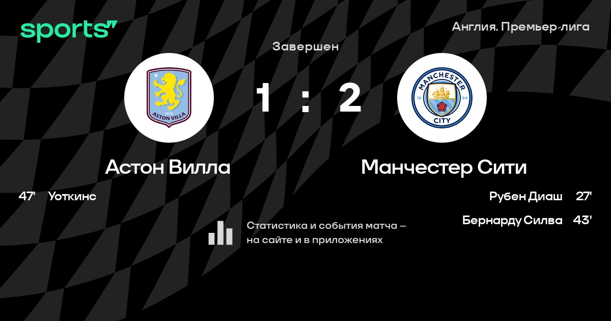 Астон Вилла – Манчестер Сити: Манчестер Сити побеждает в 7 последних очных матчах