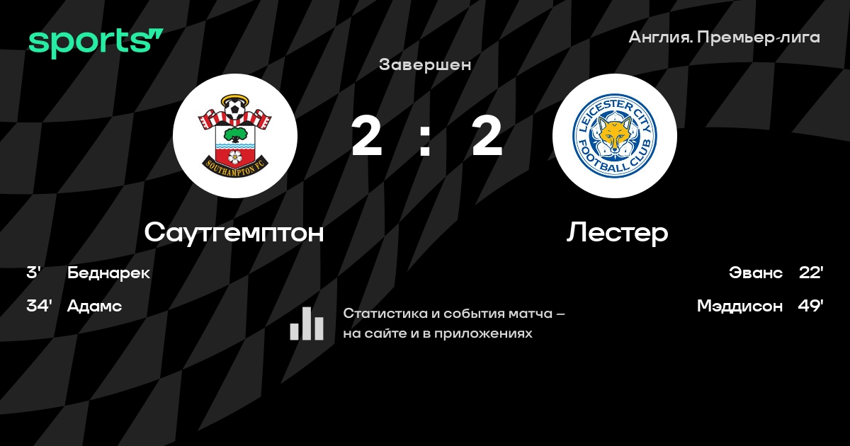 Саутгемптон – Лестер: Лестер не проигрывает в 5 из 7 последних матчей против этого соперника в гостях в турнире «Англия. Премьер-лига»