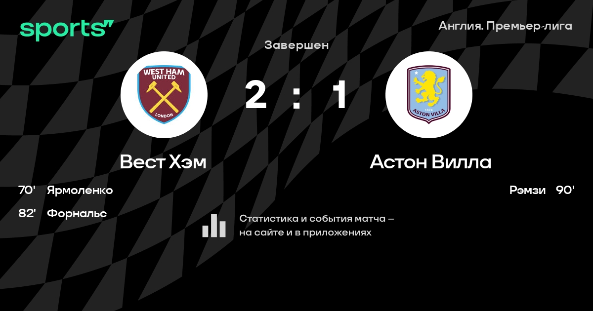 Вест Хэм – Астон Вилла: Астон Вилла забивает в 4 последних матчах против этого соперника