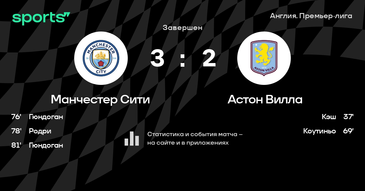 Манчестер Сити – Астон Вилла: Манчестер Сити побеждает в 8 последних очных матчах