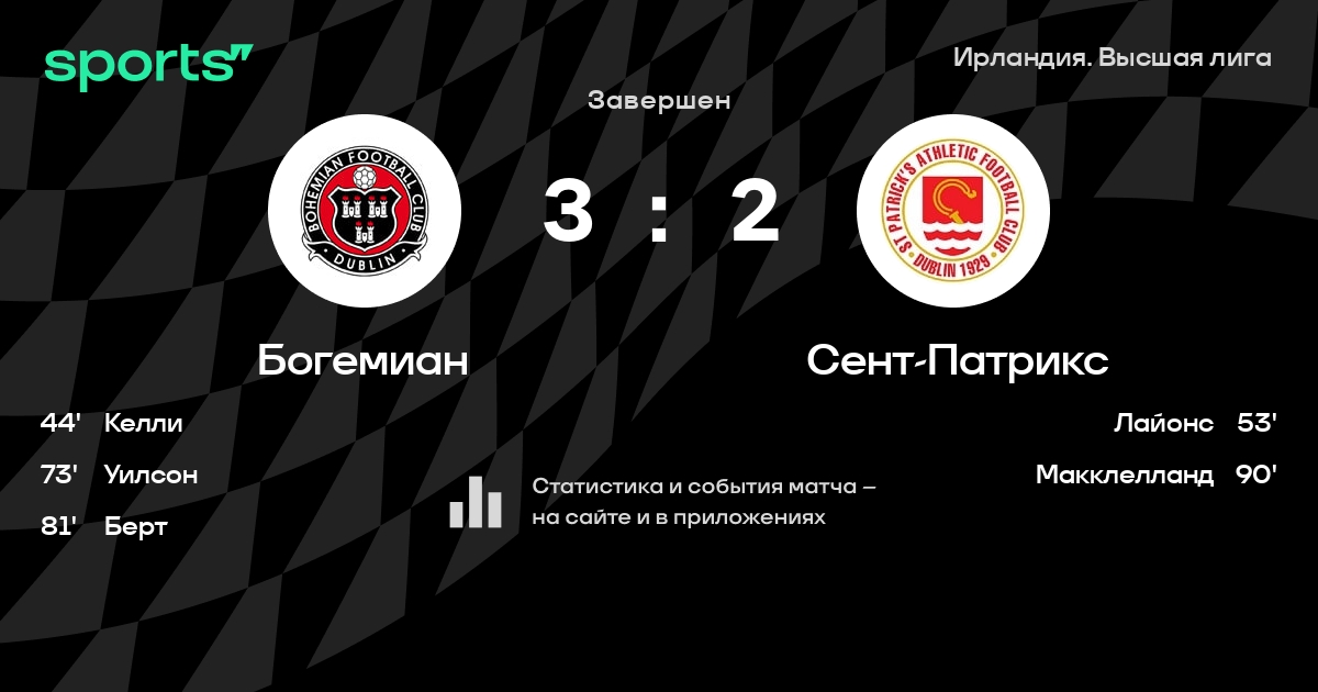 Богемиан – Сент-Патрикс: Сент-Патрикс побеждает в 3 последних очных матчах в турнире «Ирландия. Высшая лига»