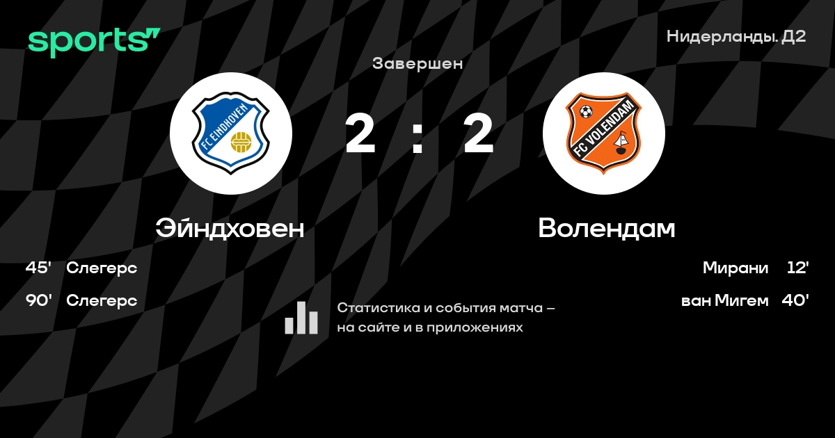 Эйндховен – Волендам: Волендам не проигрывает в 5 из 7 последних матчей против этого соперника