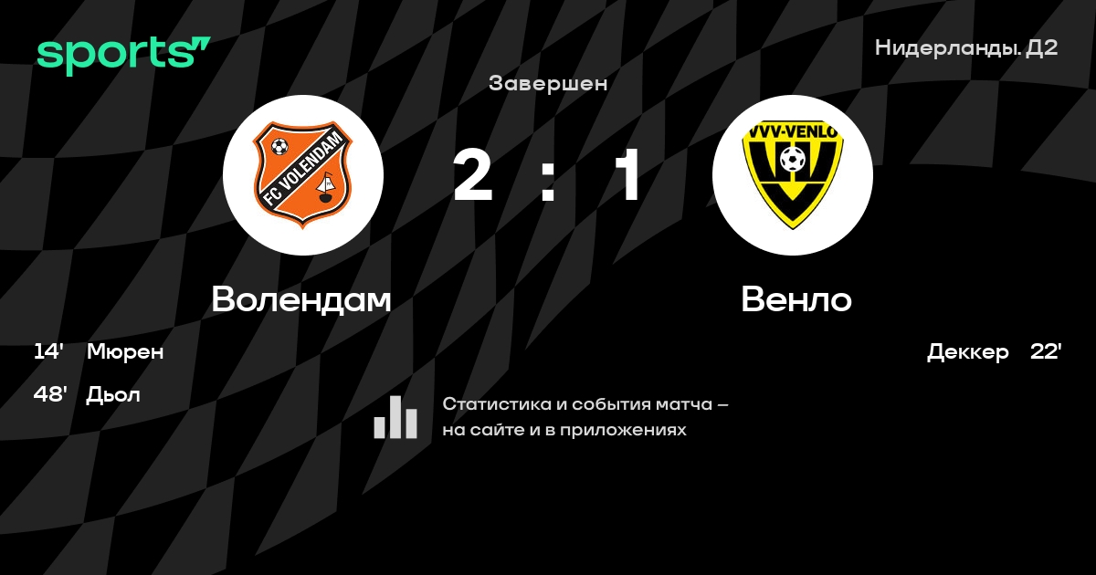 Волендам – Венло: Волендам не проигрывает в 5 из 7 последних матчей против этого соперника дома в турнире «Нидерланды. Д2»