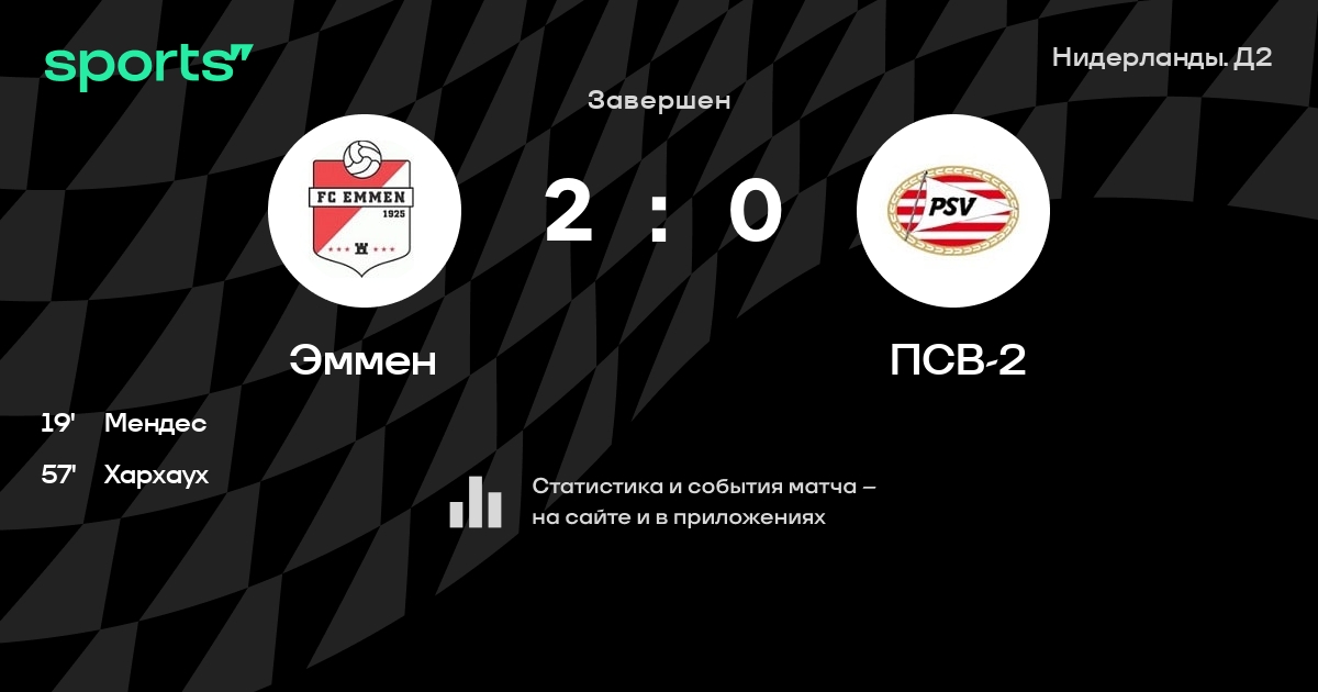 Эммен – ПСВ-2: Эммен не проигрывает в 7 из 9 последних матчей против этого соперника