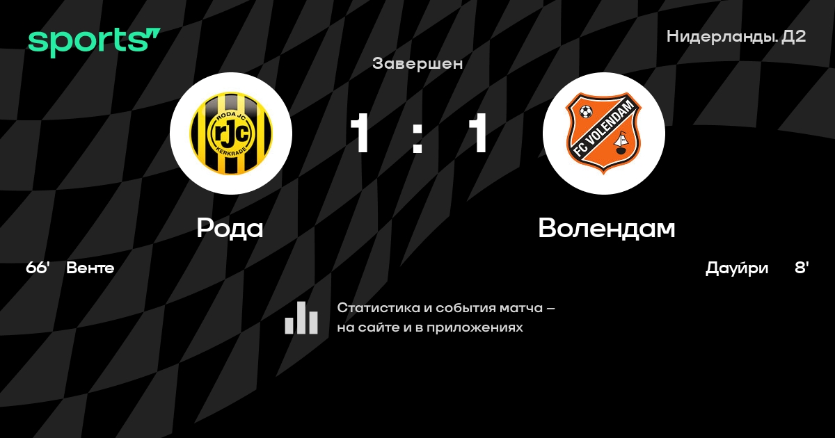 Рода – Волендам: Волендам не проигрывает в 5 из 7 последних матчей против этого соперника