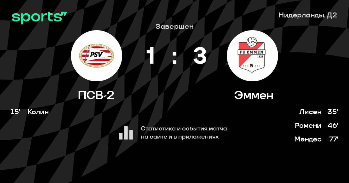 ПСВ-2 – Эммен: Эммен забивает в 4 последних матчах против этого соперника