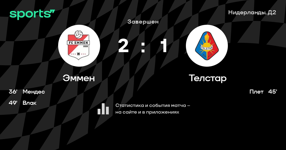 Телстар не выигрывает в 9 последних матчах в гостях в турнире «Нидерланды. Д2»