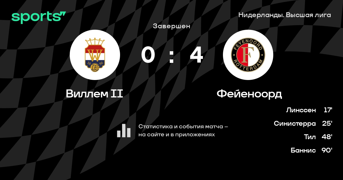 Виллем II – Фейеноорд: Фейеноорд побеждает в 4 последних очных матчах