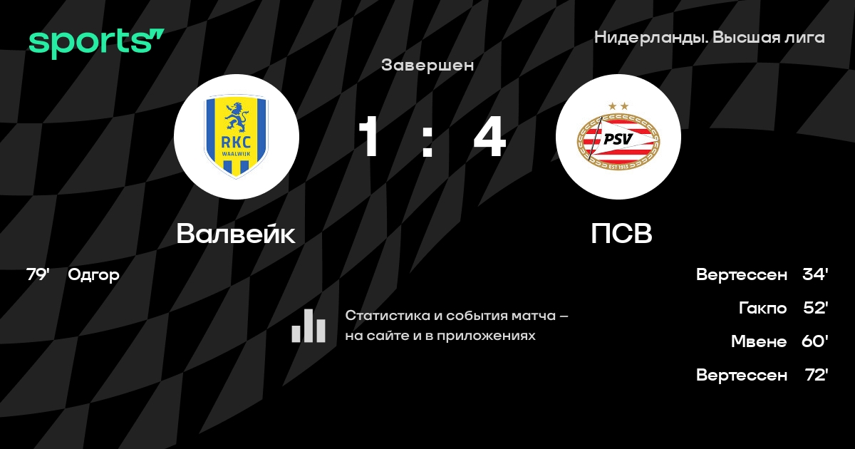 Валвейк – ПСВ: ПСВ побеждает в 3 последних очных матчах