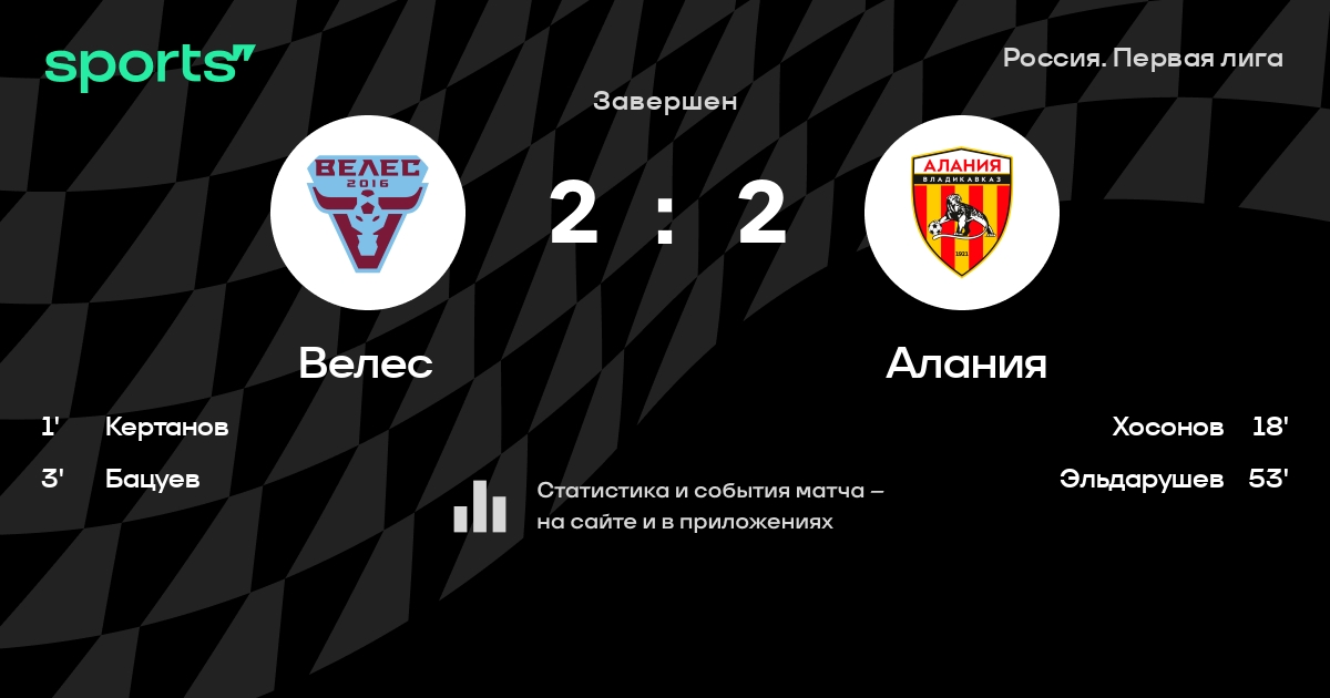 Велес играет вничью в 3 последних очных встречах в турнире «Россия. Олимп-ФНЛ»