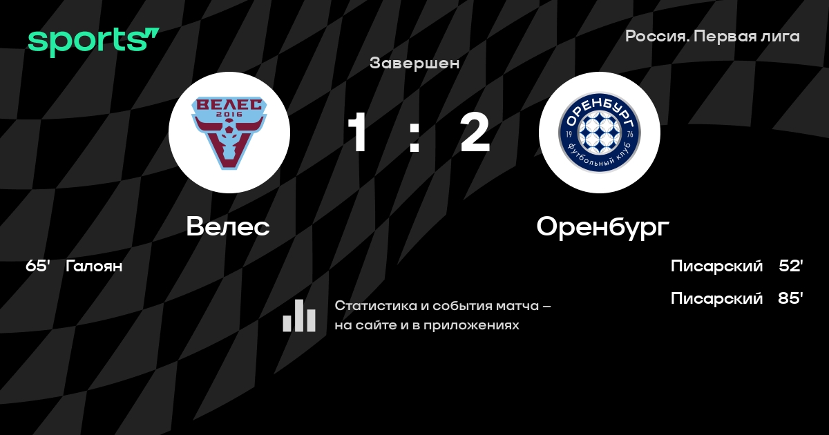 Велес – Оренбург: Оренбург забивает в 3 последних матчах против этого соперника