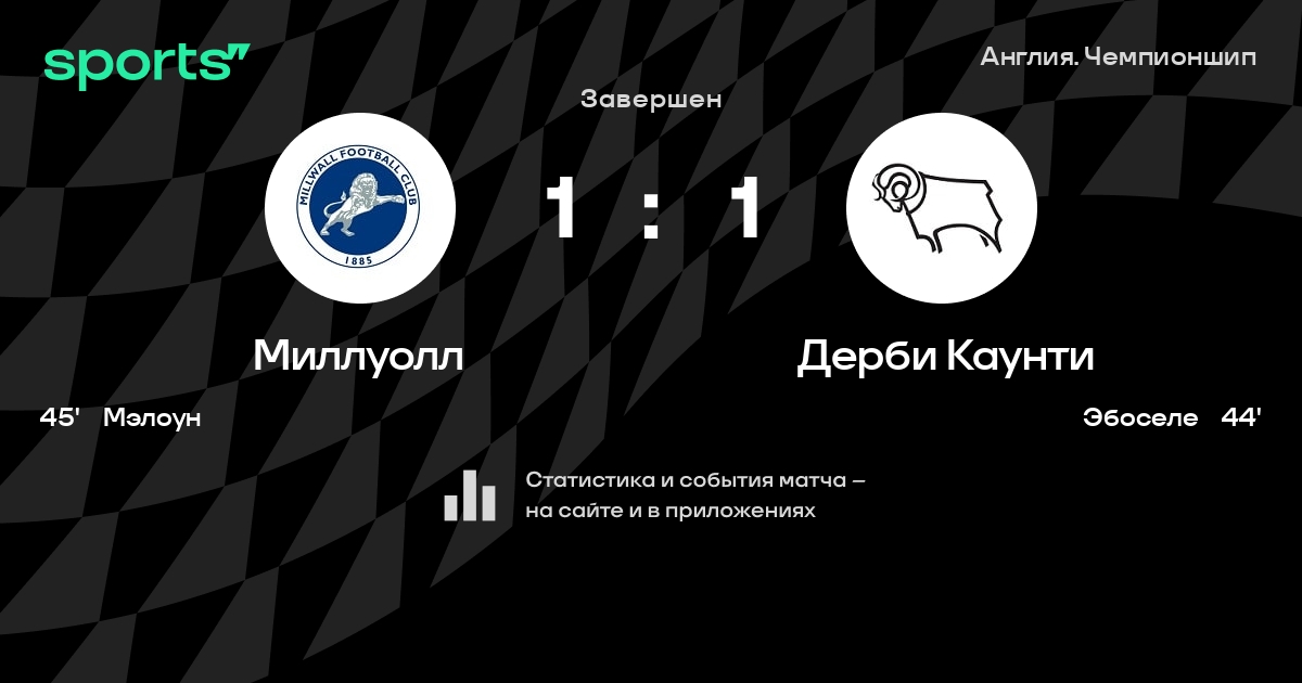 Трансляция Миллуолл - Дерби Каунти