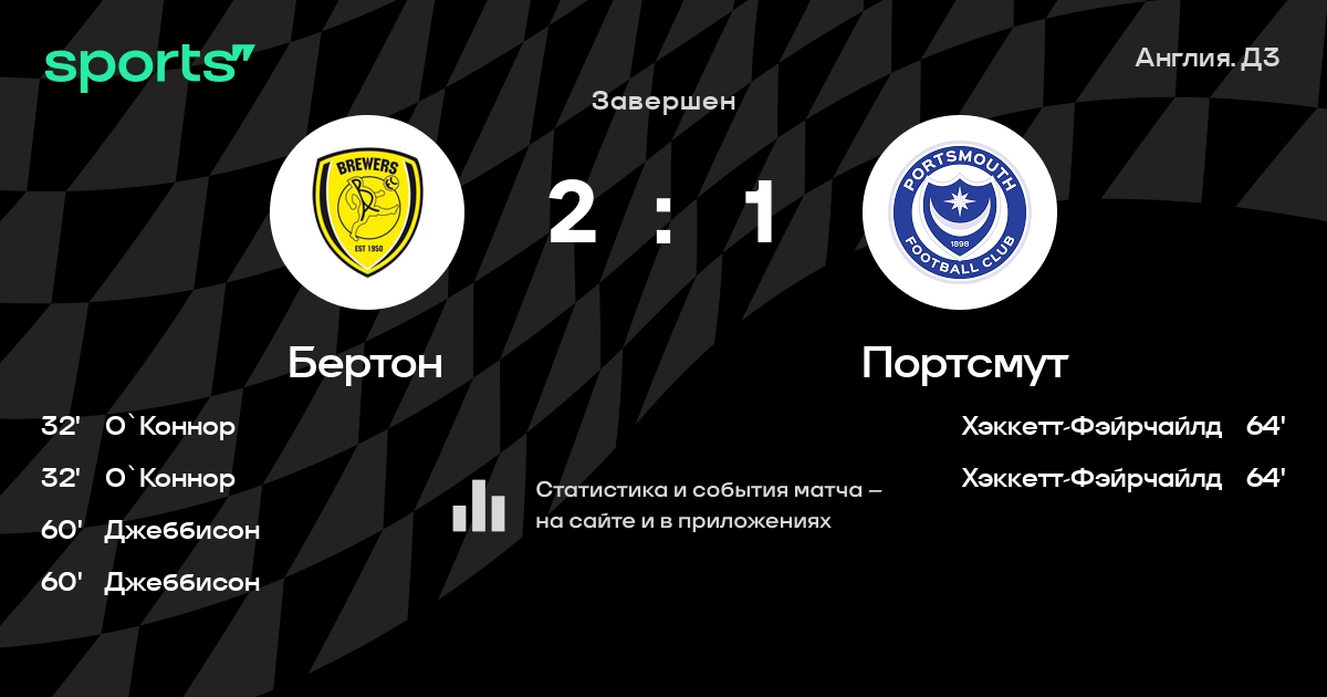 Бертон – Портсмут: Бертон забивает в 7 последних матчах против этого соперника