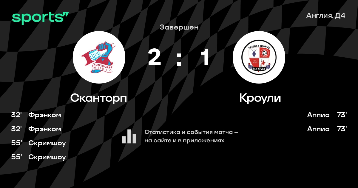 Сканторп – Кроули: Кроули забивает в 8 из 9 последних матчей против этого соперника