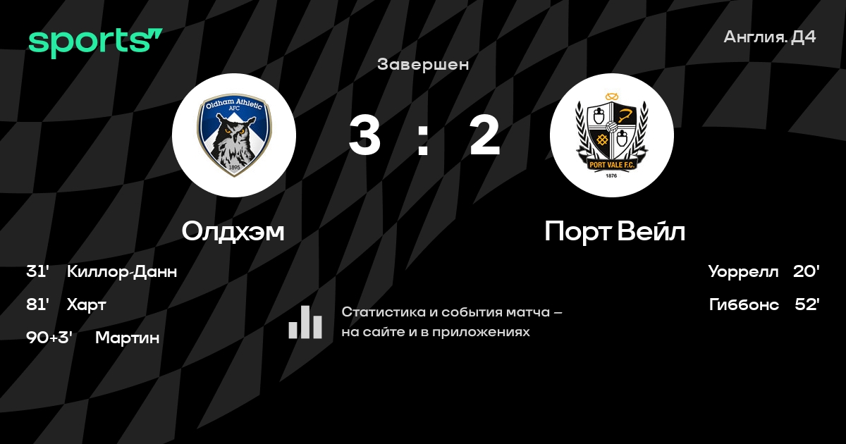 Олдхэм – Порт Вейл: Порт Вейл не проигрывает в 9 из 11 последних матчей против этого соперника