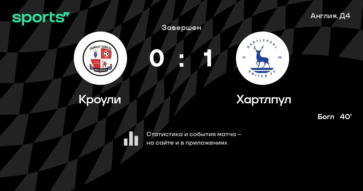 Кроули – Хартлпул: Кроули не проигрывает в 6 из 7 последних матчей против этого соперника