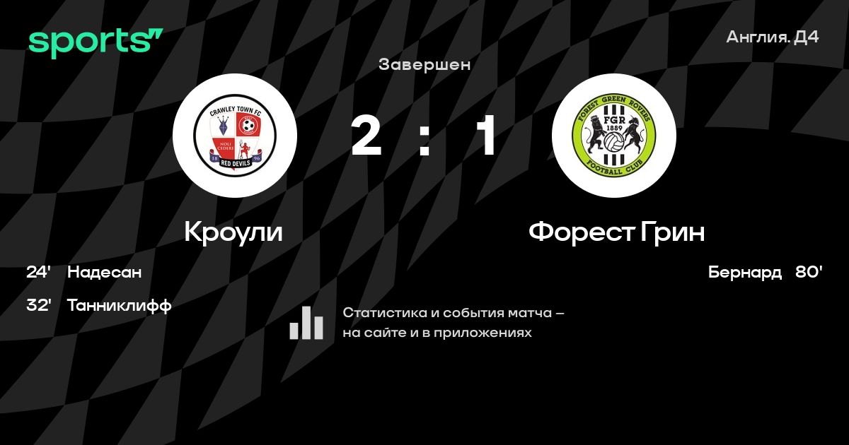 Кроули – Форест Грин: Кроули забивает в 5 из 7 последних матчей против этого соперника
