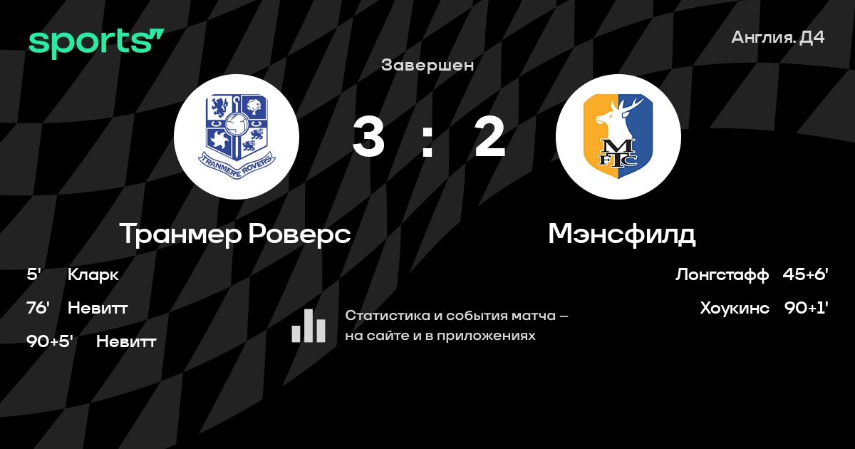Транмер Роверс – Мэнсфилд: Мэнсфилд не пропускает в 1 из 8 последних матчей против этого соперника