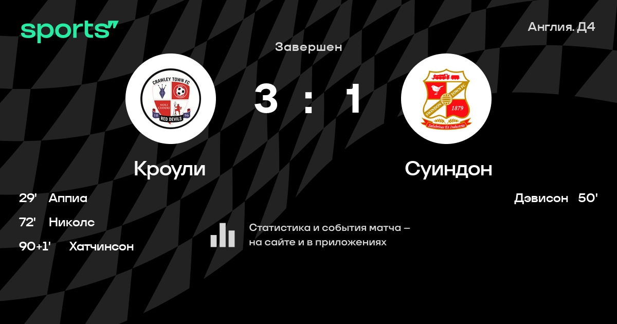 Кроули – Суиндон: Кроули не проигрывает в 10 из 12 последних матчей против этого соперника