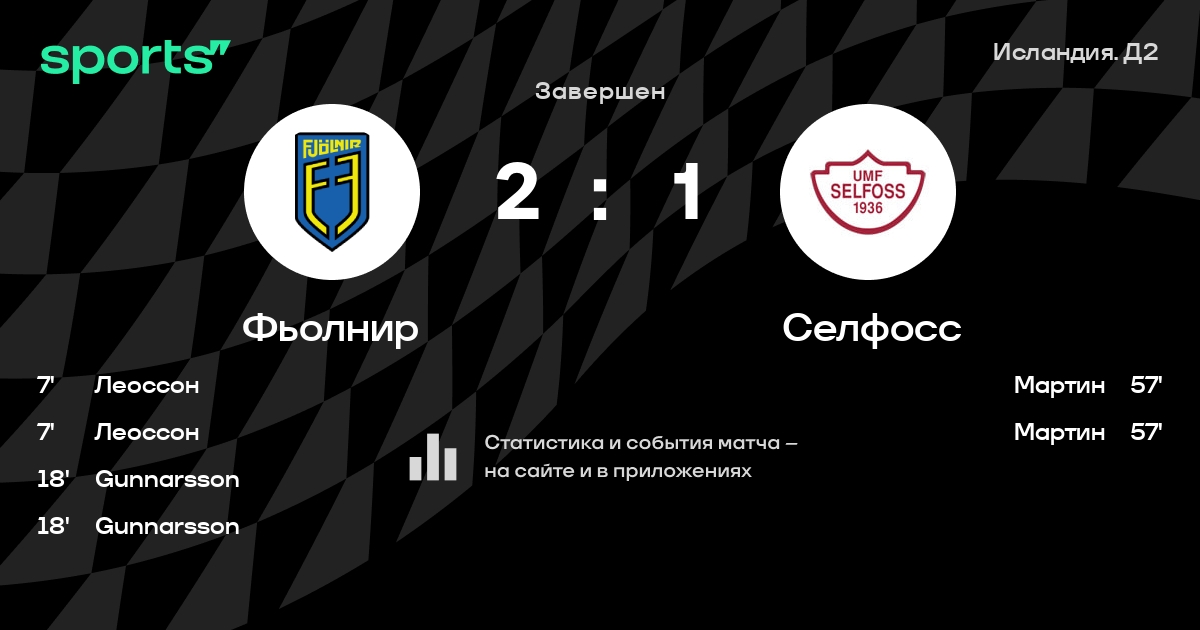 | 3 | Фьолнир | 22 | 13 | 3 | 6 | 38 | 21 | +17 | 42 | ||