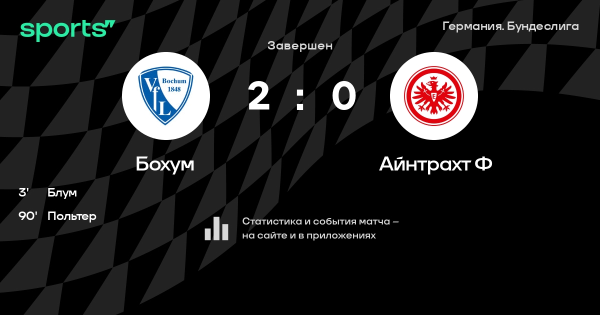 Бохум – Айнтрахт Ф: Айнтрахт Ф не пропускает в 3 последних матчах против этого соперника
