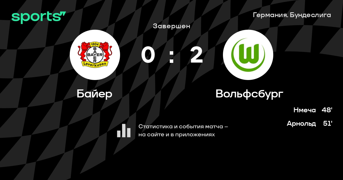 Байер – Вольфсбург: Вольфсбург побеждает в 3 последних очных матчах в гостях в турнире «Германия. Бундеслига»