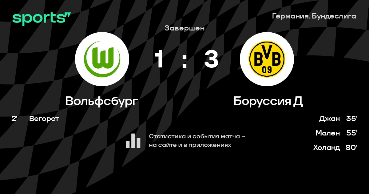 Вольфсбург – Боруссия Д: Боруссия Д не пропускает в 9 последних матчах против этого соперника