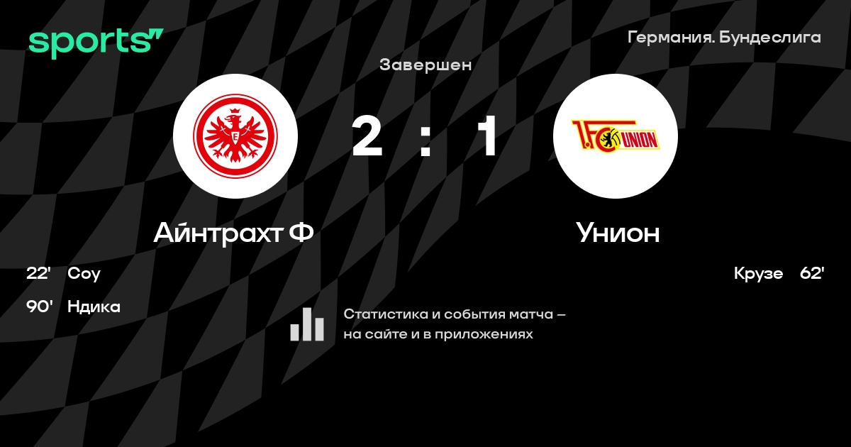 Айнтрахт Ф – Унион Берлин: Айнтрахт Ф забивает в 7 последних матчах против этого соперника