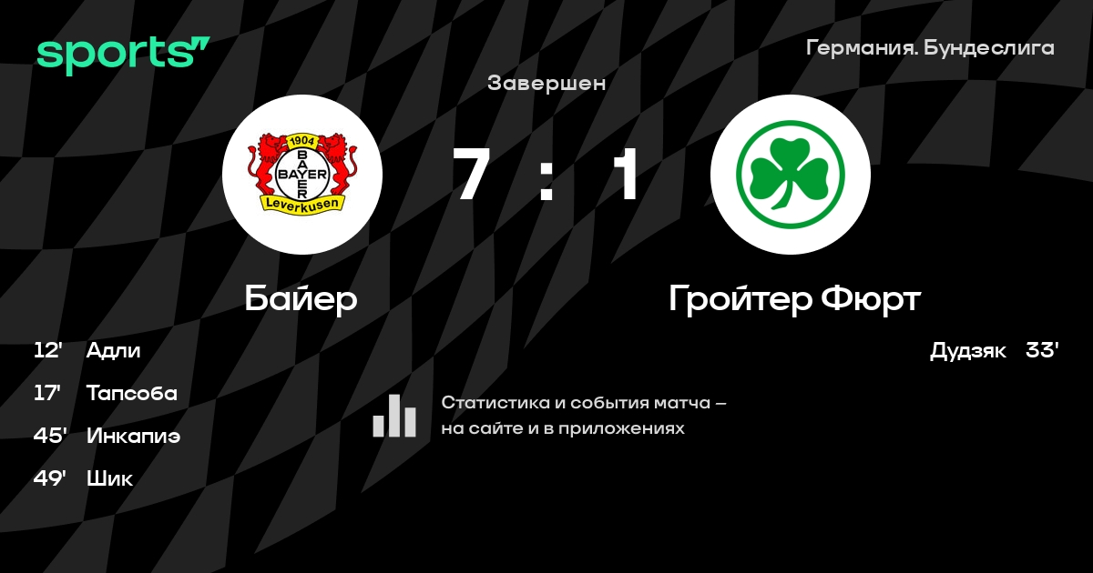 «Байер» разгромил «Гройтер» – 7:1. Шик сделал покер, он второй бомбардир Бундеслиги