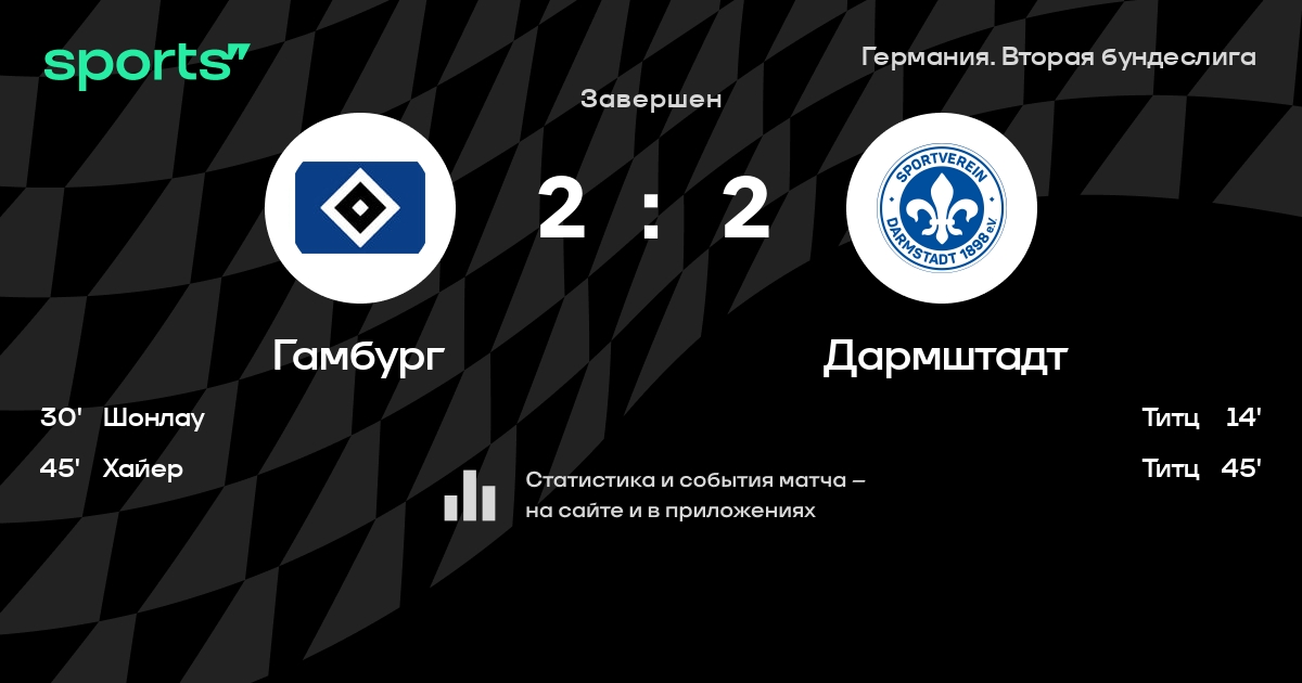 Гамбург – Дармштадт: Дармштадт не проигрывает в 5 последних матчах против этого соперника в гостях в турнире «Германия. Вторая Бундеслига»