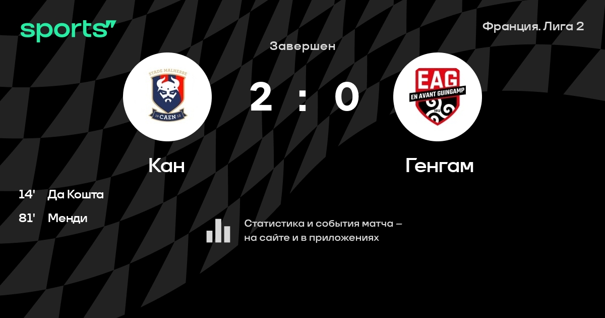 Кан – Генгам: Генгам не проигрывает в 5 из 7 последних матчей против этого соперника в гостях в турнире «Франция. Лига 2»