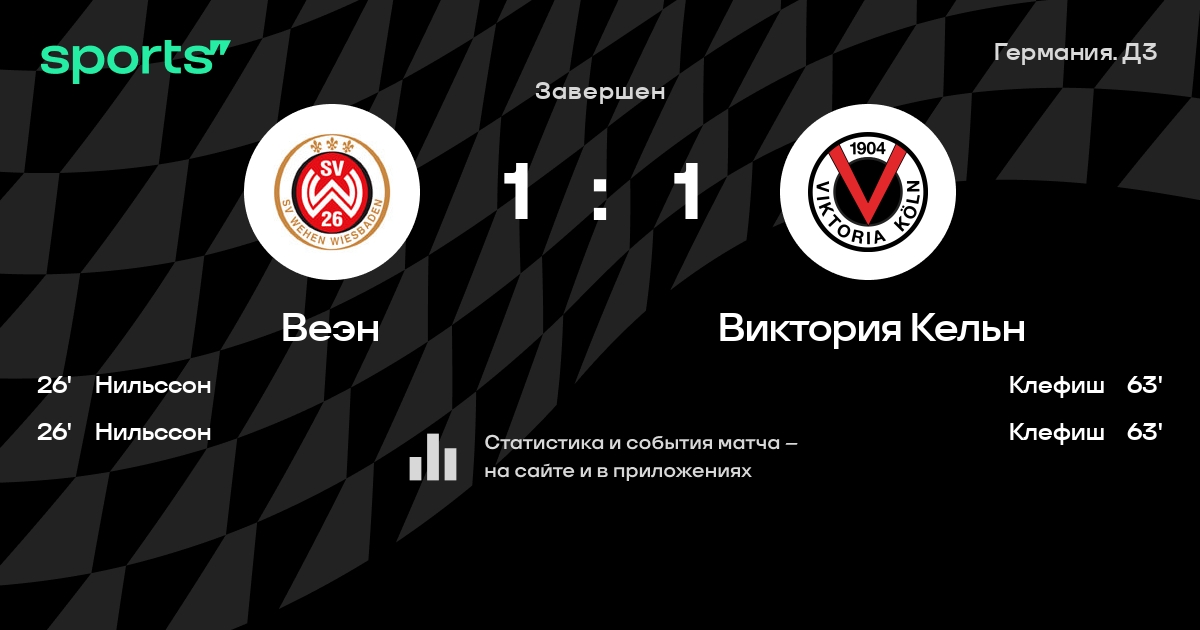 Виктория Кельн проигрывает в 5 последних матчах в гостях в турнире «Германия. Д3»