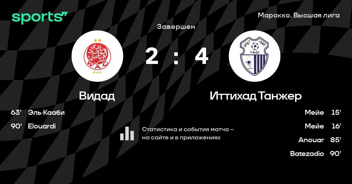 Видад – Иттихад Танжер: Видад забивает в 4 последних матчах против этого соперника