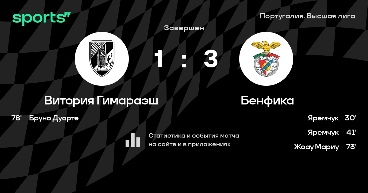 Витория Гимараэш – Бенфика: Бенфика не проигрывает в 22 последних матчах против этого соперника