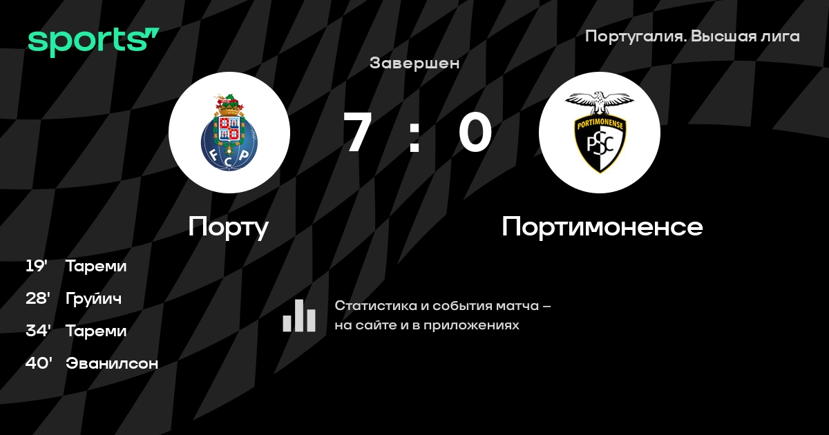 Диогу Кошта - Сануси, Пепе, Мбемба, Пепе Акино - Тареми, Фабиу Виейра, Груйич, Витинья, Отавио - ЭванилсонЗапасные: Марчесин, Венделл, Фабиу Кардозу, Эуштакиу, Фернандо, Намасо, Тони Мартинес, Галено, Франсишку Консейсау