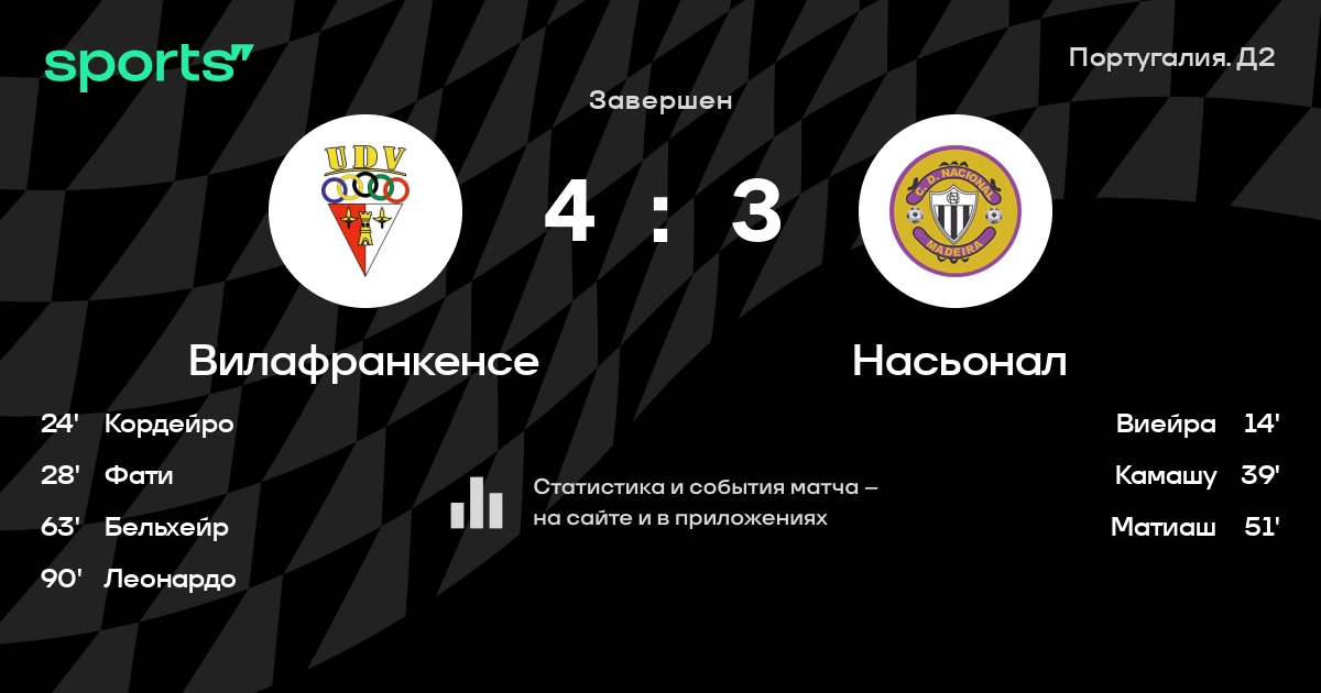 Вилафранкенсе – Насьонал: Насьонал забивает в 3 последних матчах против этого соперника