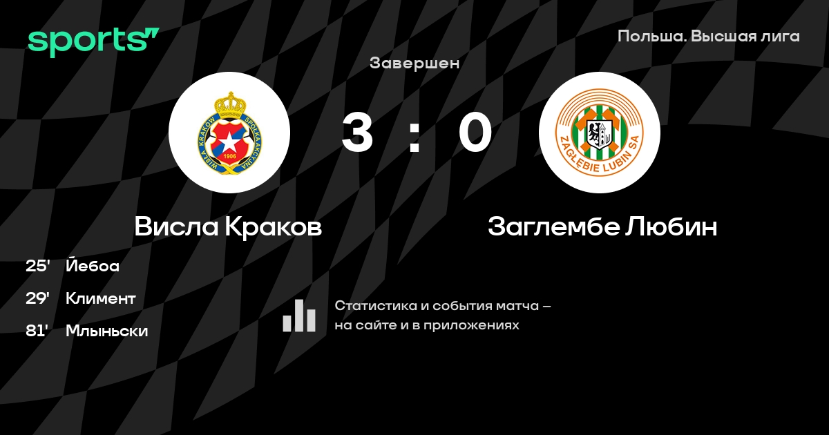 Висла Краков – Заглембе Любин: Заглембе Любин побеждает в 3 последних очных матчах