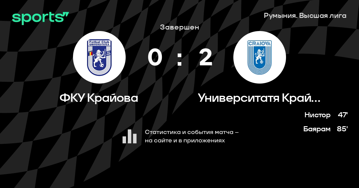 ФКУ Крайова не выигрывает в 6 последних матчах в турнире «Румыния. Высшая лига»