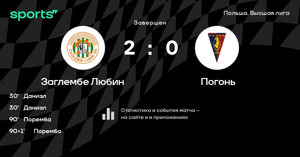 Заглембе Любин – Погонь: Погонь не проигрывает в 5 из 7 последних матчей против этого соперника