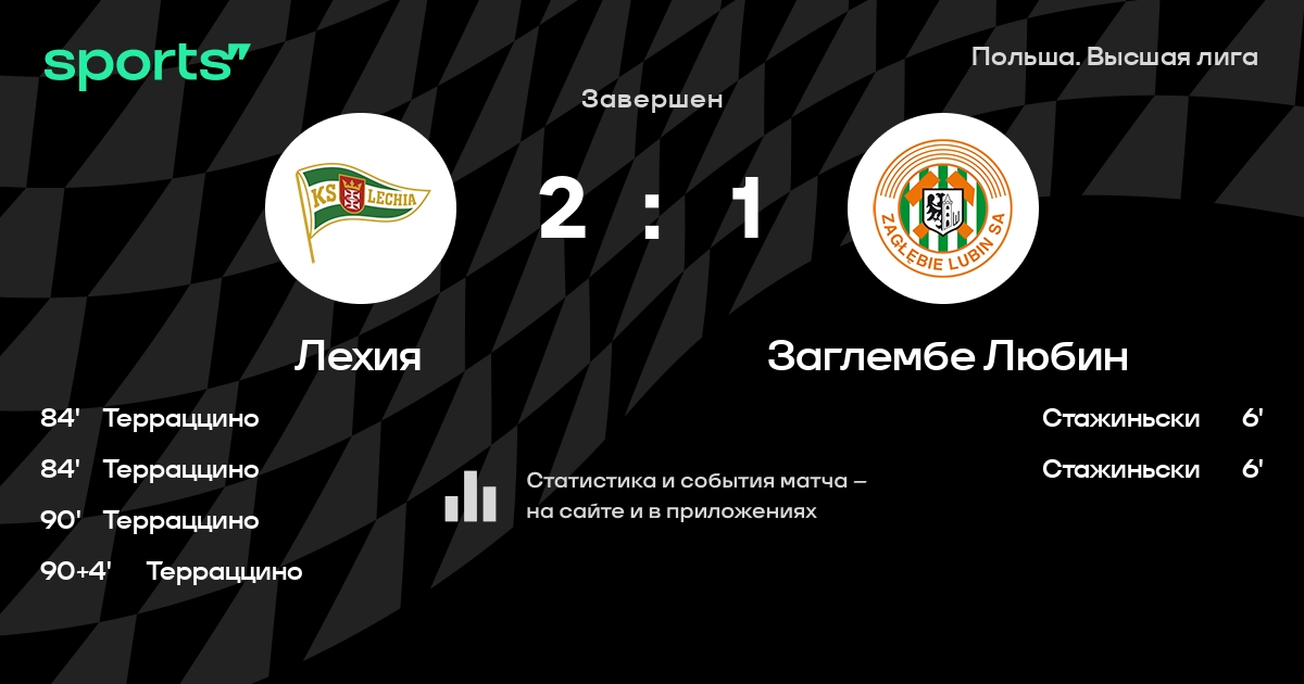 Лехия – Заглембе Любин: Заглембе Любин не проигрывает в 7 из 9 последних матчей против этого соперника в турнире «Польша. Высшая лига»