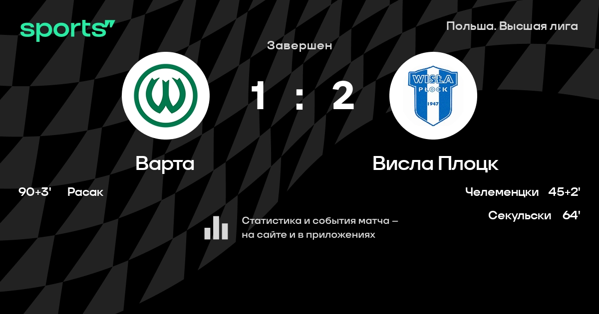 Варта – Висла Плоцк: Варта побеждает в 4 последних очных матчах