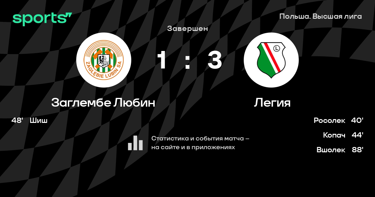Заглембе Любин – Легия: Легия побеждает в 3 последних очных матчах