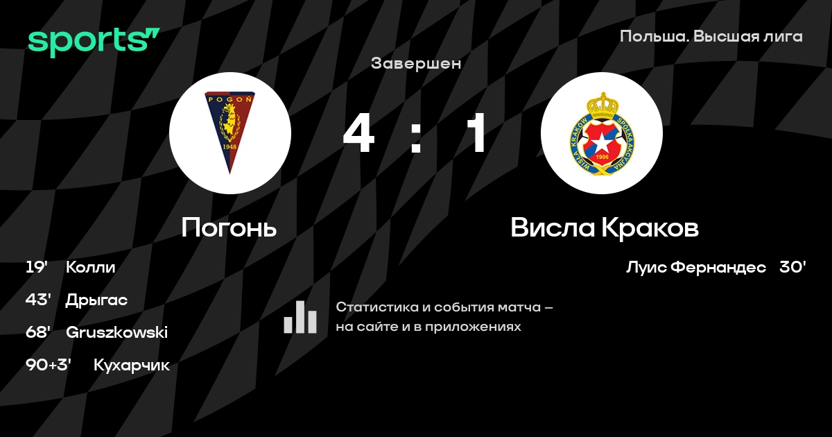 Погонь – Висла Краков: Погонь забивает в 3 последних матчах против этого соперника