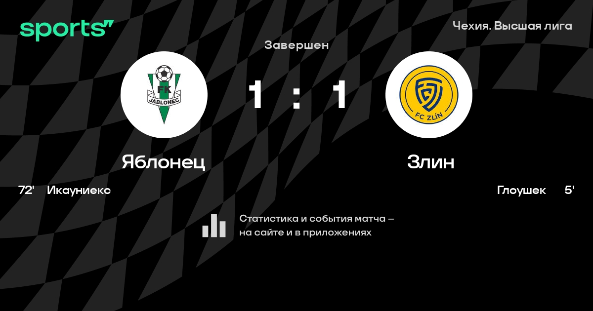 Яблонец – Фастав Злин: Яблонец не пропускает в 1 из 7 последних матчей против этого соперника