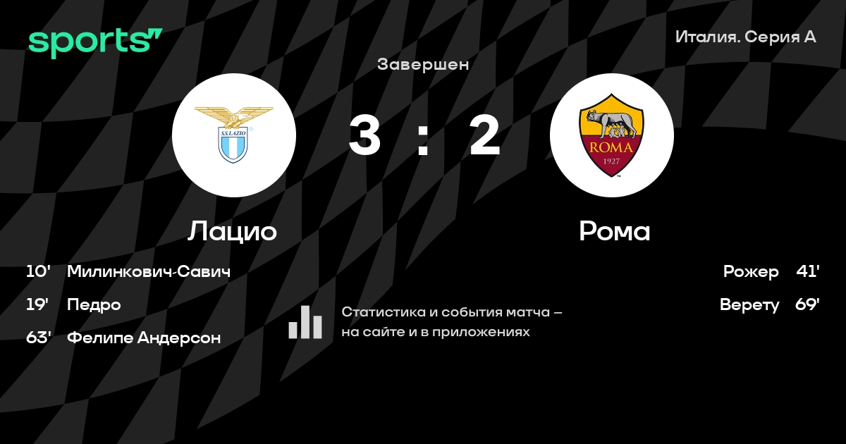 Рейна - Хюсай, Ачерби, Луис Фелипе, Марушич - Луис Альберто, Лейва, Милинкович-Савич - Педро, Иммобиле, Фелипе АндерсонЗапасные: Адамонис, Стракоша, Габаррон, Раду, Башич, Катальди, Эскаланте, Ладзари, Акпа-Акпро, Моро, Мурики, Ромеро